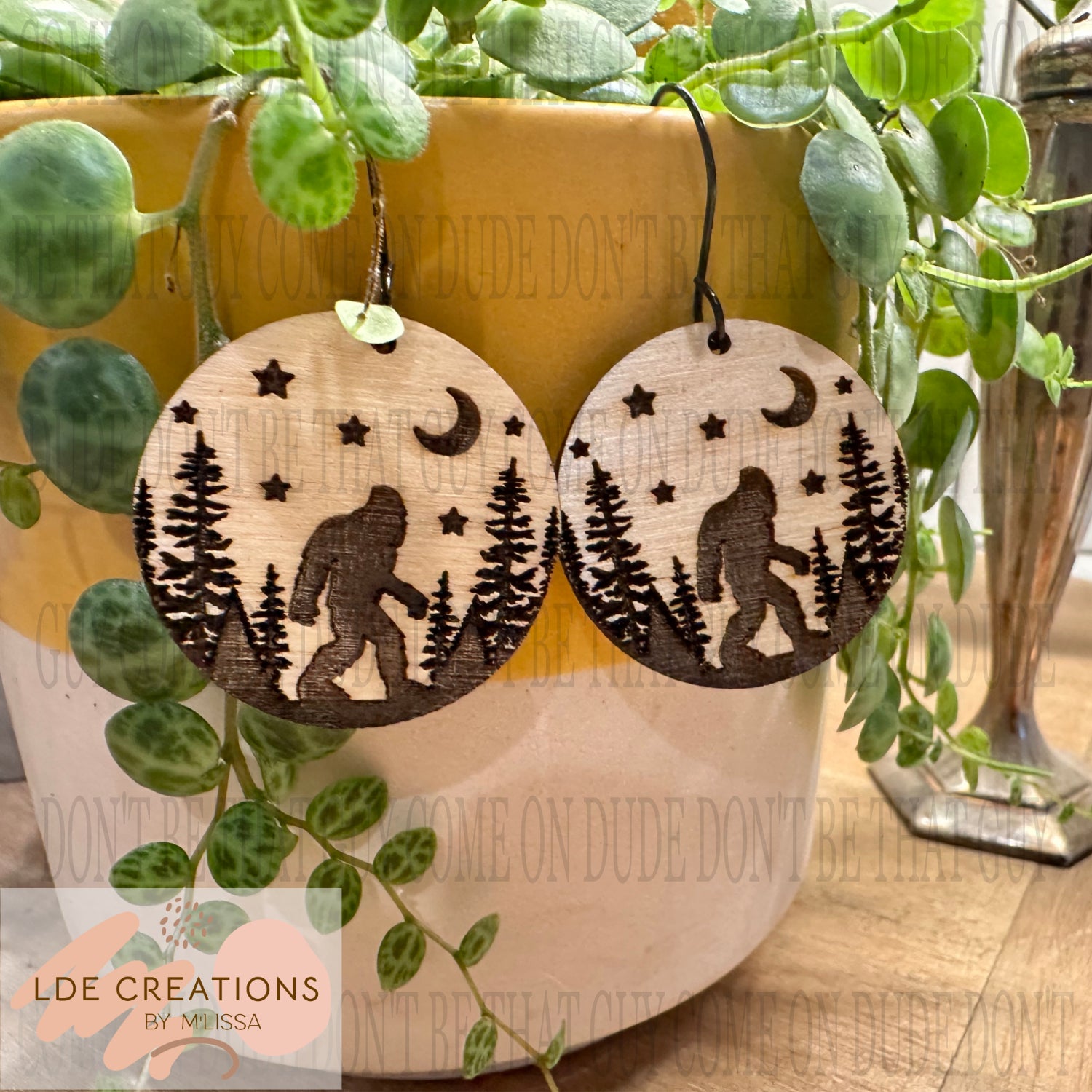 Wood engraved earrings on black plated stainless steel wire. Wires are non-tarnishing and hypoallergenic. The wood is so light weight that you won't even realize you are wearing them. Drop length is 2 inches.